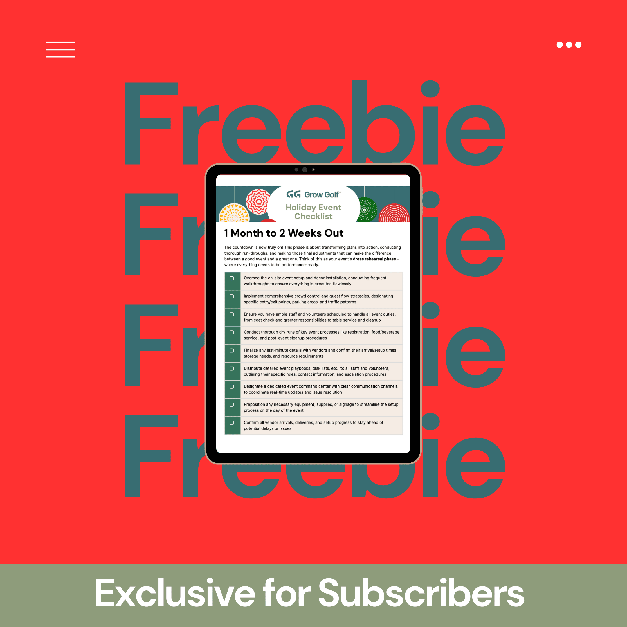 As you get ready for your upcoming holiday event, we wanted to provide our subscribers with a FREE comprehensive checklist to help ease the stress of holiday event planning this year.