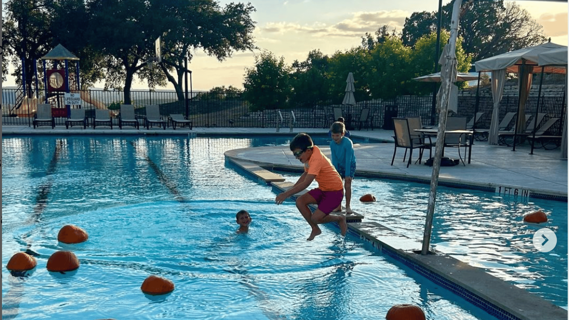 Why? Leave it to Texas to reinvent the pumpkin patch by turning it into a pool party! Instead of trudging through muddy fields or climbing onto hay wagons, kids got to splash their way through a floating pumpkin patch right in the club pool. It's such a clever twist on tradition – perfectly adapted to Austin's warmer climate while adding an unexpected element of fun to the classic pumpkin-picking experience. Who needs a corn maze when you can have a pool maze of bobbing pumpkins?