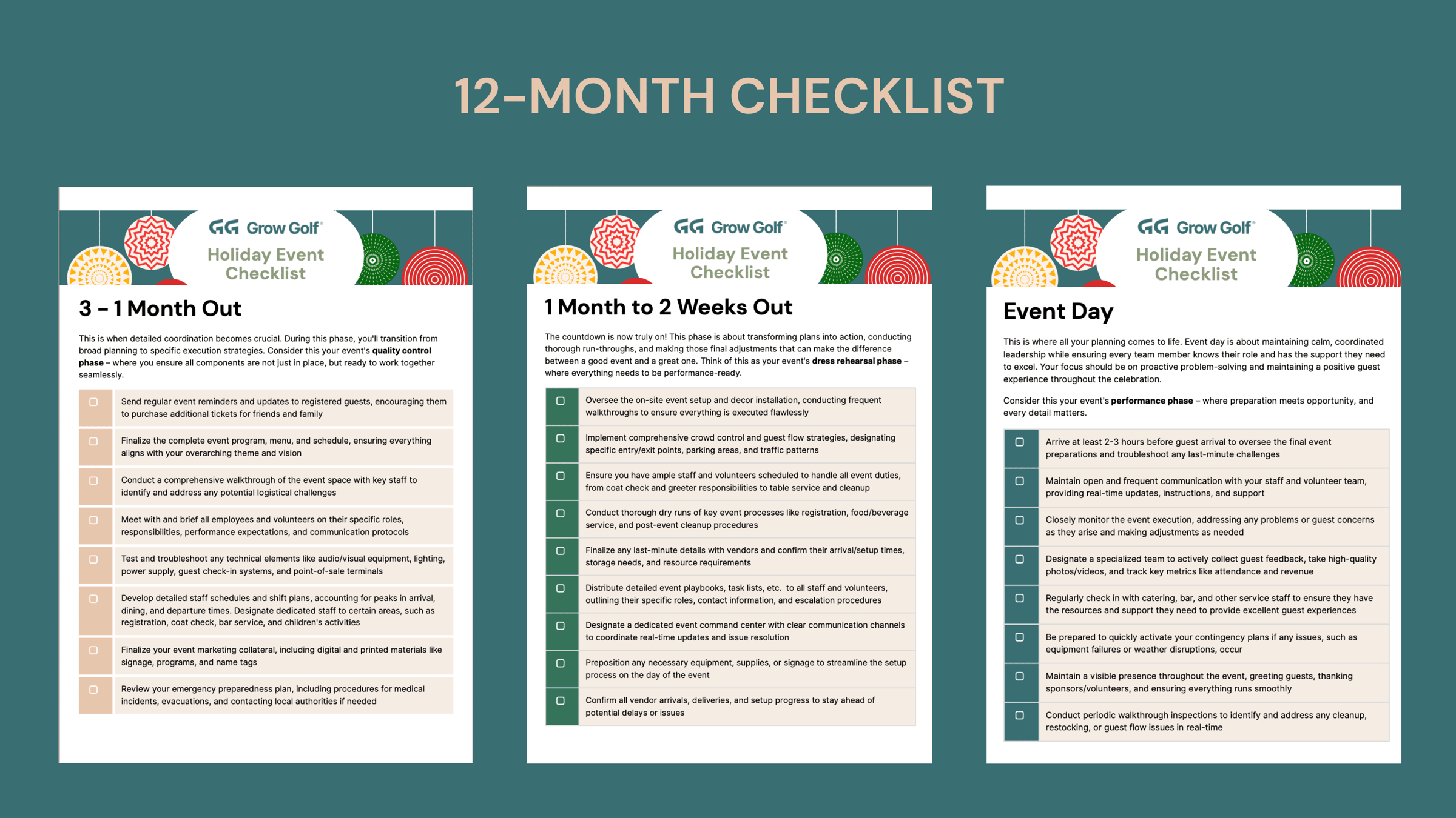 Knowing these events often are months in the making, we created a phased checklist from 12 months out to post-event, for use today and for future years. If we missed any details, we'd love your feedback!